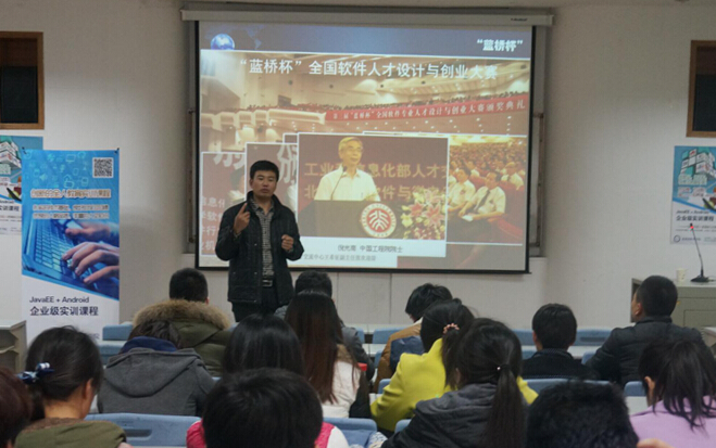 3月13日下午,蓝桥杯大赛组委会、蓝桥杯软件学院的高校联络部主任张磊老师在学院副201教室举办了主题为“就业有未来,蓝桥杯在行动”的专家讲座。我院2012级近200名同学参加了本次讲座,讲座由院党委副书记何卫军老师主持。