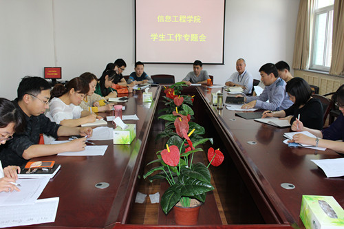 为进一步加强学院学生管理工作,实现学院人才培养目标,认真部署、安排近期学生工作情况,4月28日下午,我院在216会议室召开学生工作专题会议。学院2011级至2014级四个年级共30名班主任出席会议。院党委副书记何卫军主持本次会议,学工秘书王淑珍、各年级辅导员参加会议。