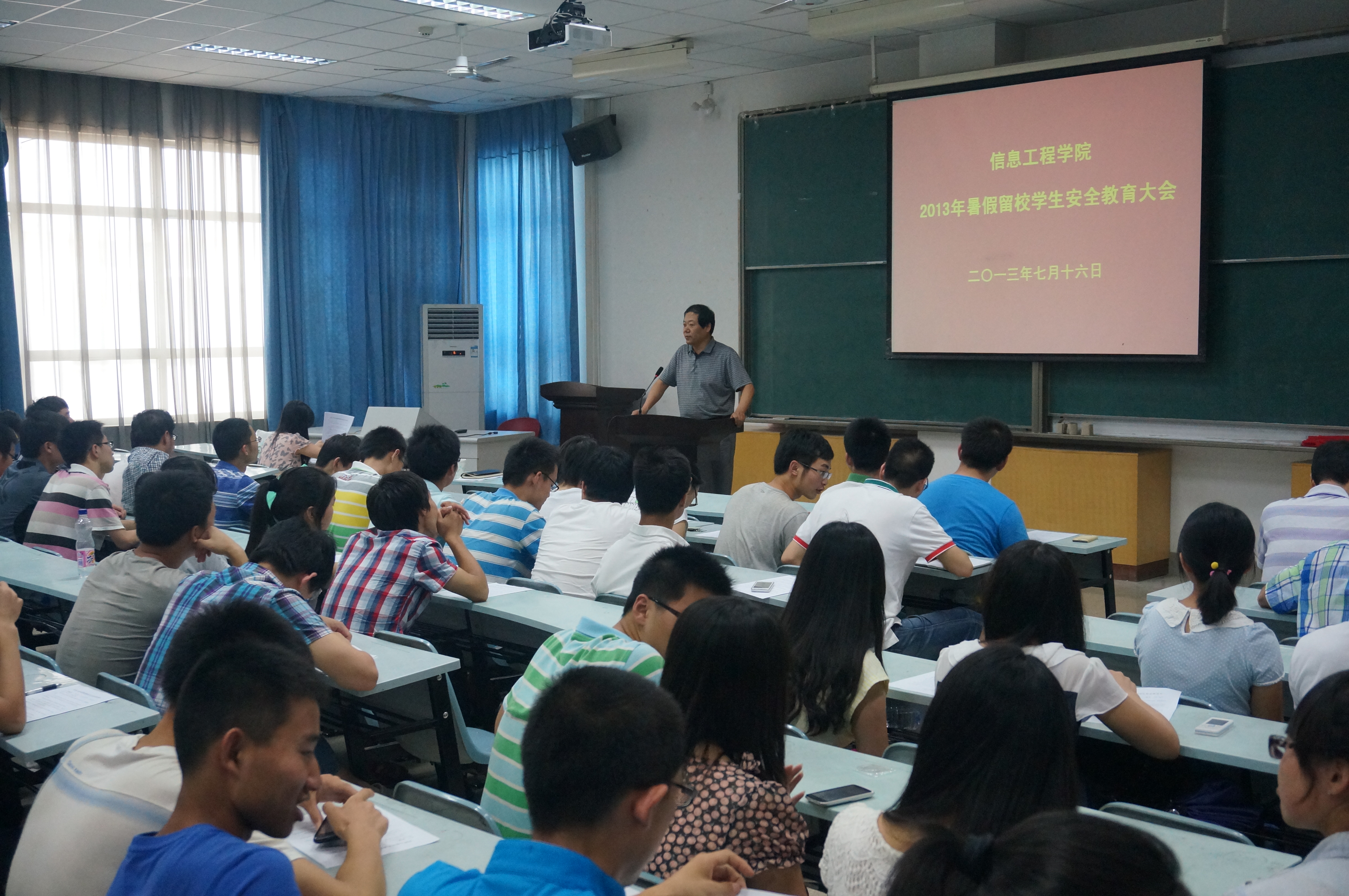 7月16日,bat365中文官网网页版在学院M2教室召开暑期留校学生安全教育大会。院党委书记宋西德、院党委副书记何卫军、相关辅导员及全体留校学生参加了此次会议。