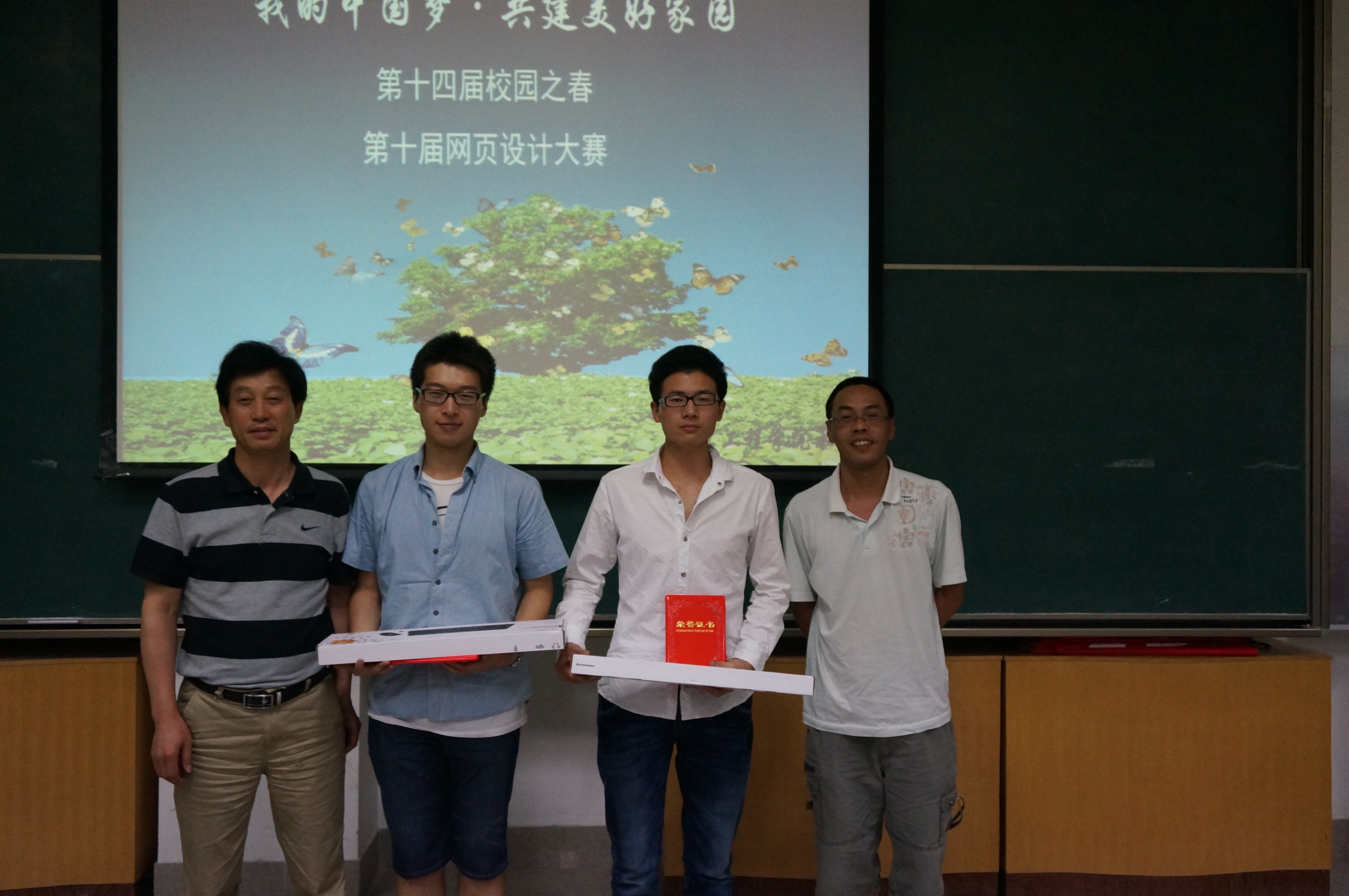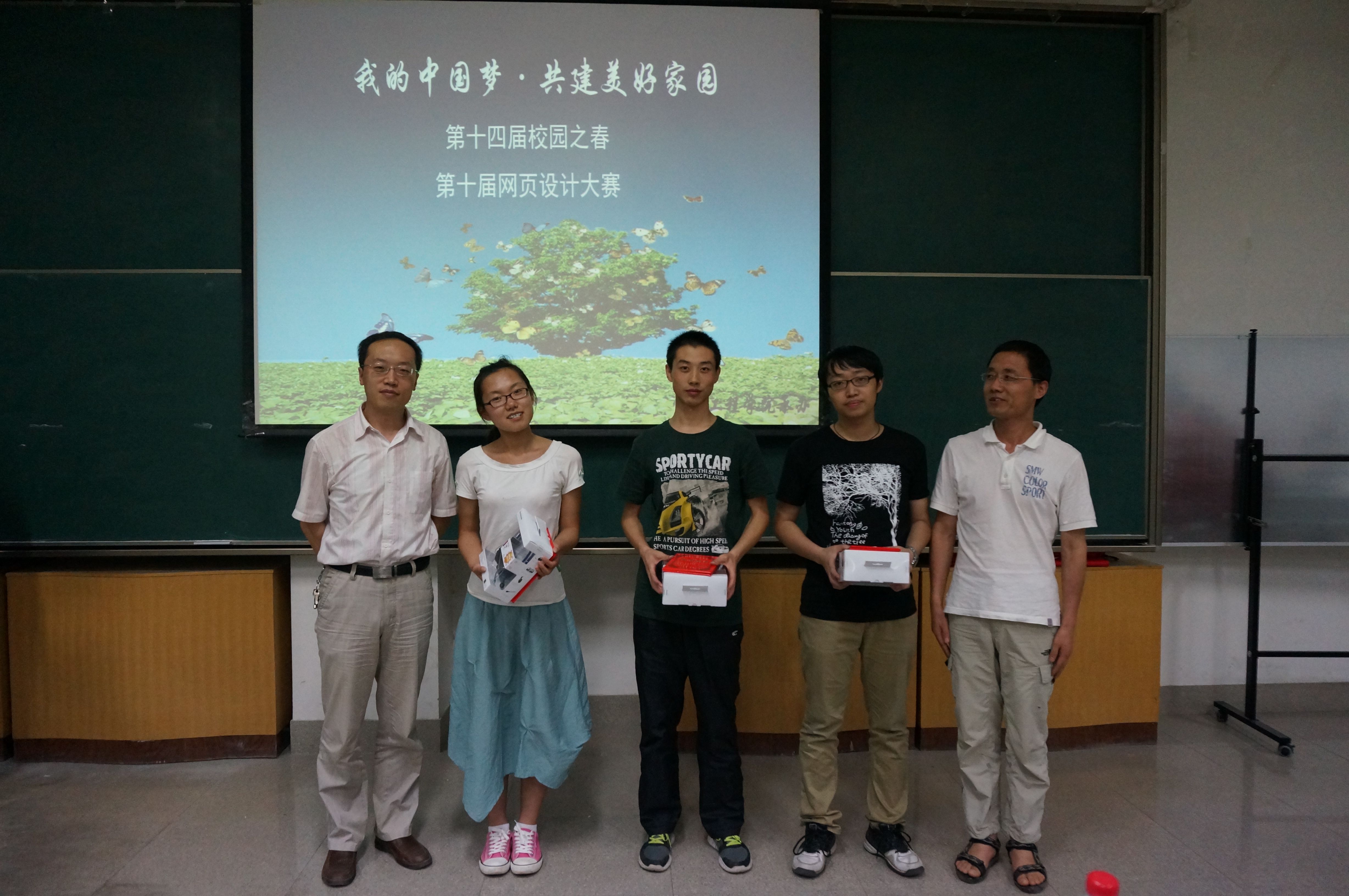 经过激烈的竞争和评委的认真评选,来自信息学院周江同学的《信息服务联盟供求系统》凭借其优秀的制作技术,良好的后台操作一举获得大赛一等奖;陈金亚同学的《个人心情日记本》以及张文康、夏旭同学的《共建美好家园》获得二等奖;获得三等奖的作品有《中奥环境研究保护中心》,《中国梦??共建美好明天》,《环保部落》。
