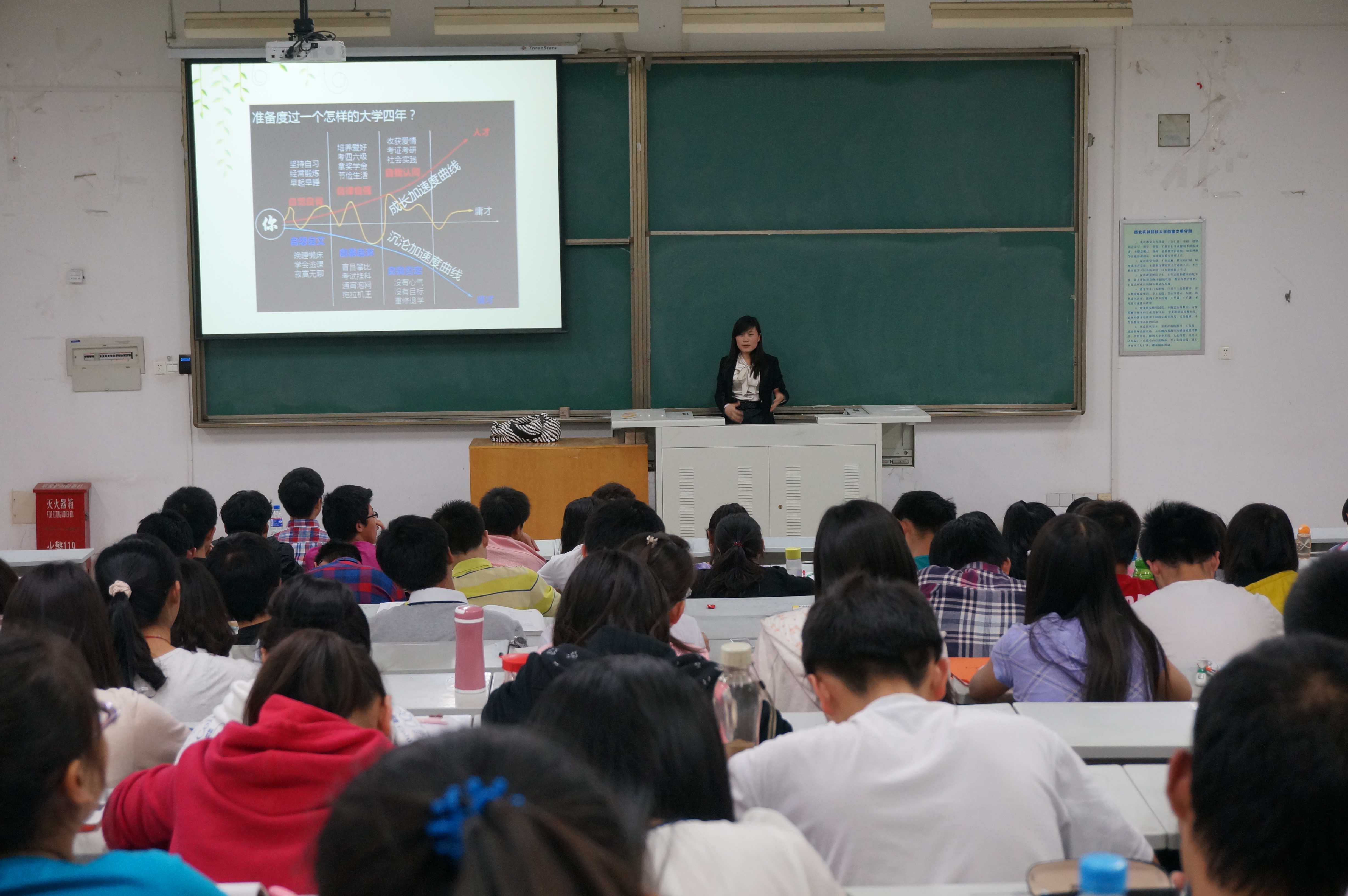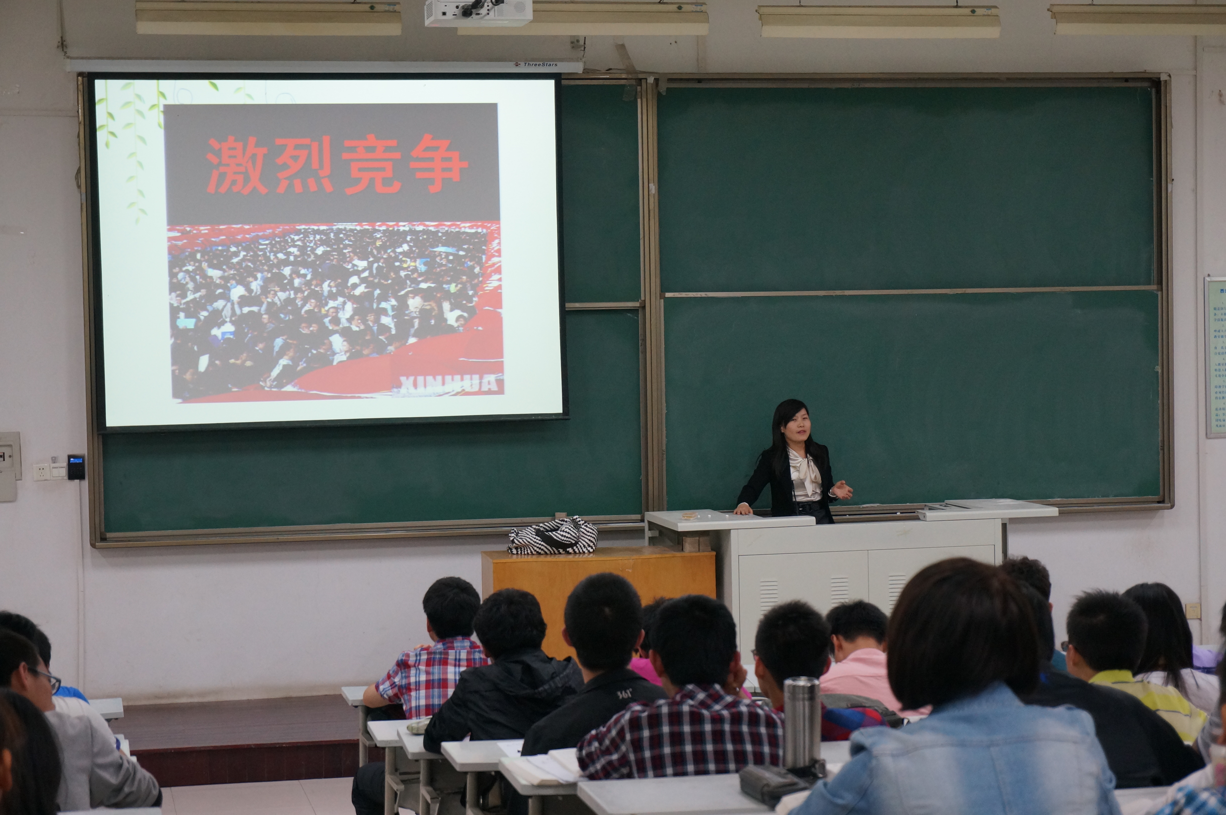 王淑珍老师围绕如何度过迷茫期,如何做个有目标的人,以及认同优胜劣汰的原则展开讨论。随后,王老师通过举近几年毕业生的事例,让同学们对如何规划未来大学生活有了更为深刻的认识。紧接着,她针对大学生的职业生涯进行了剖析。对此,同学们产生了强雷的共鸣。最后,王老师给同学们提出了诸多对于大学学习和生活的建议。