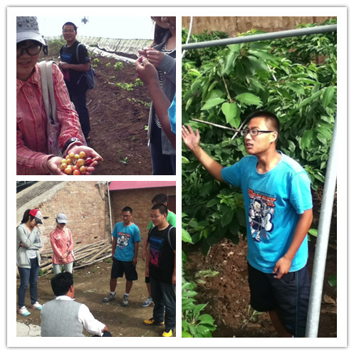 历经半个多小时的车程,田园使者们与合作社蒋书记碰面。在蒋书记的带领下,田园使者们来到了樱桃大棚,来自园艺学院的周海渊同学为其他队员讲解关于樱桃的知识,合作社的阿姨热情的给同学们摘了樱桃,期间,蒋书记为同学们讲述合作社的运作以及设施农业的发展,说道:“设施农业就是与自然抗衡。”每位同学都从中学到了课本上没有的知识。