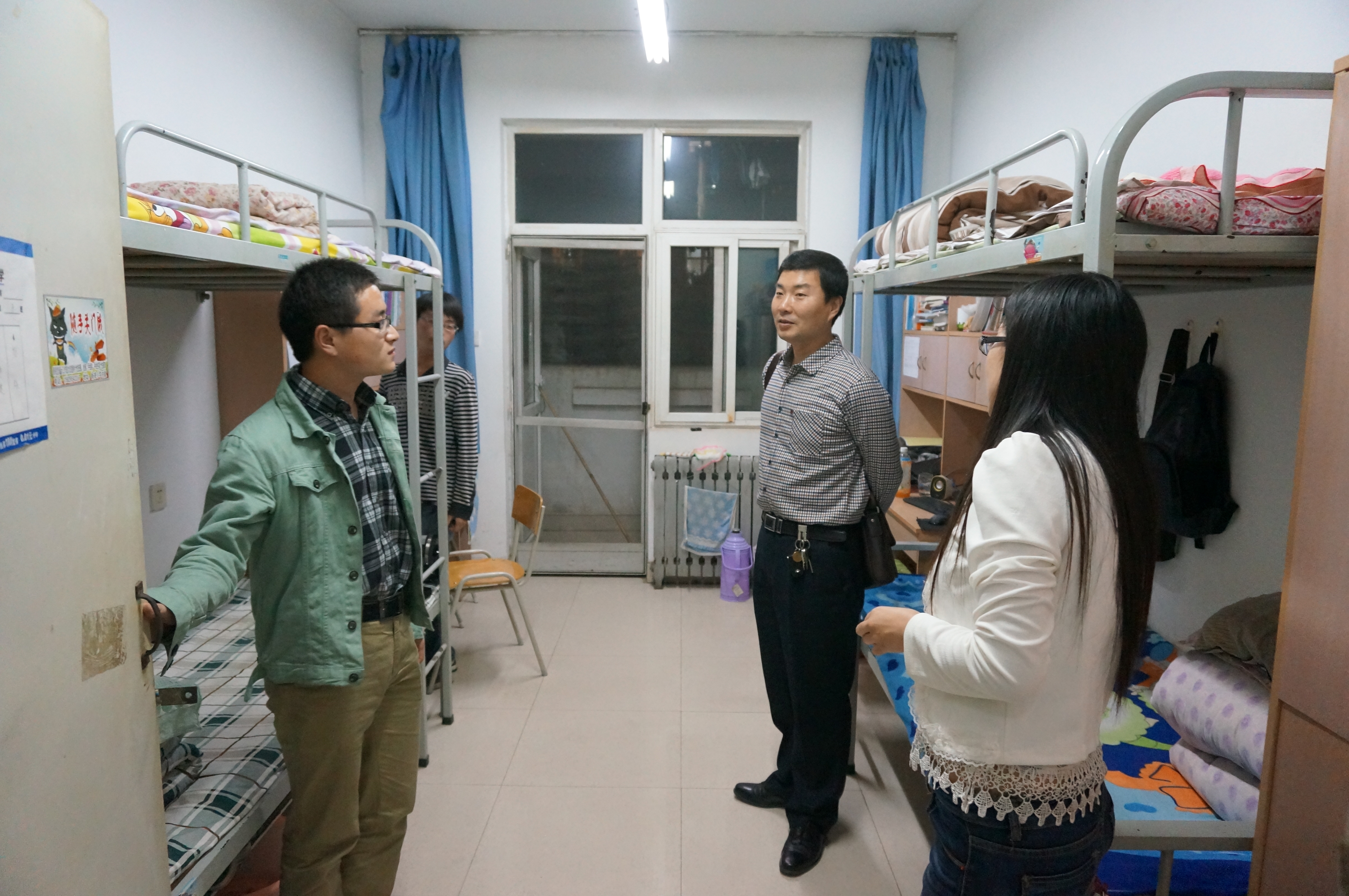 2013年5月2日晚,我院为落实“文明宿舍创建活动”,学院党委副书记何卫军、学工秘书王淑珍、团工委书记桂恺、辅导员倪玲、仵亚伟、郭峰、学院学生会主席团以及生活部主要学生干部共同走访检查了学院西区10#的学生宿舍。