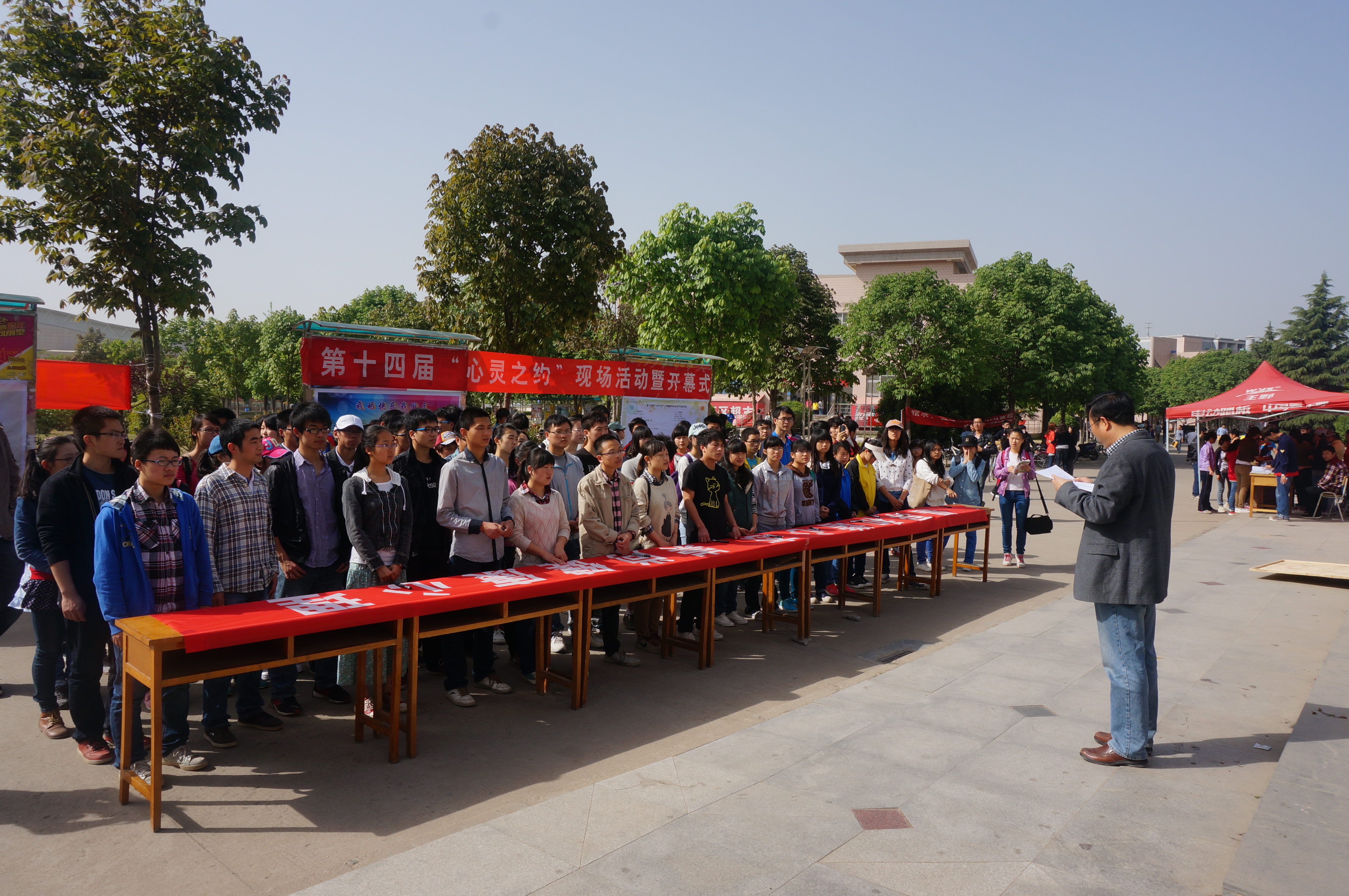 “倡导和谐心态,崇尚健康心理”,4月14日上午10点,第十四届“心灵之约”心理健康知识宣传月开幕式在西超前举行,心理咨询部窦龙老师主持了此次开幕式,我院倪玲老师以及学校各学院心理部、院学生会学业部等同学参加了此次活动。