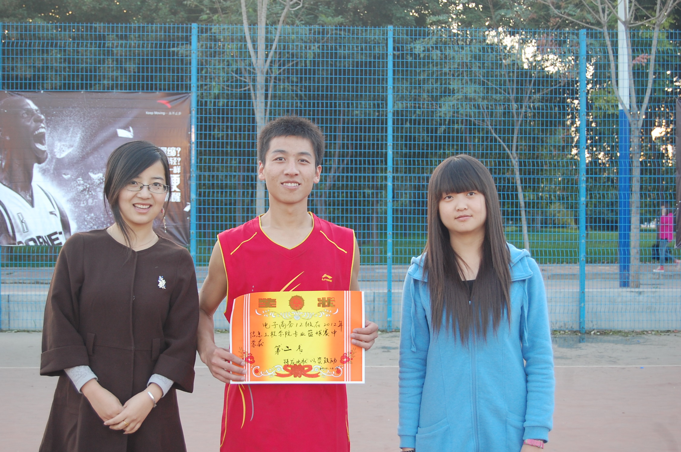 最终排名公布之后,桂老师、倪老师和仵老师分别为此次赛事中获得前四名的队伍颁发了奖状和奖品,并与队员们亲切合影留念。至此,此次新生篮球赛取得圆满成功。