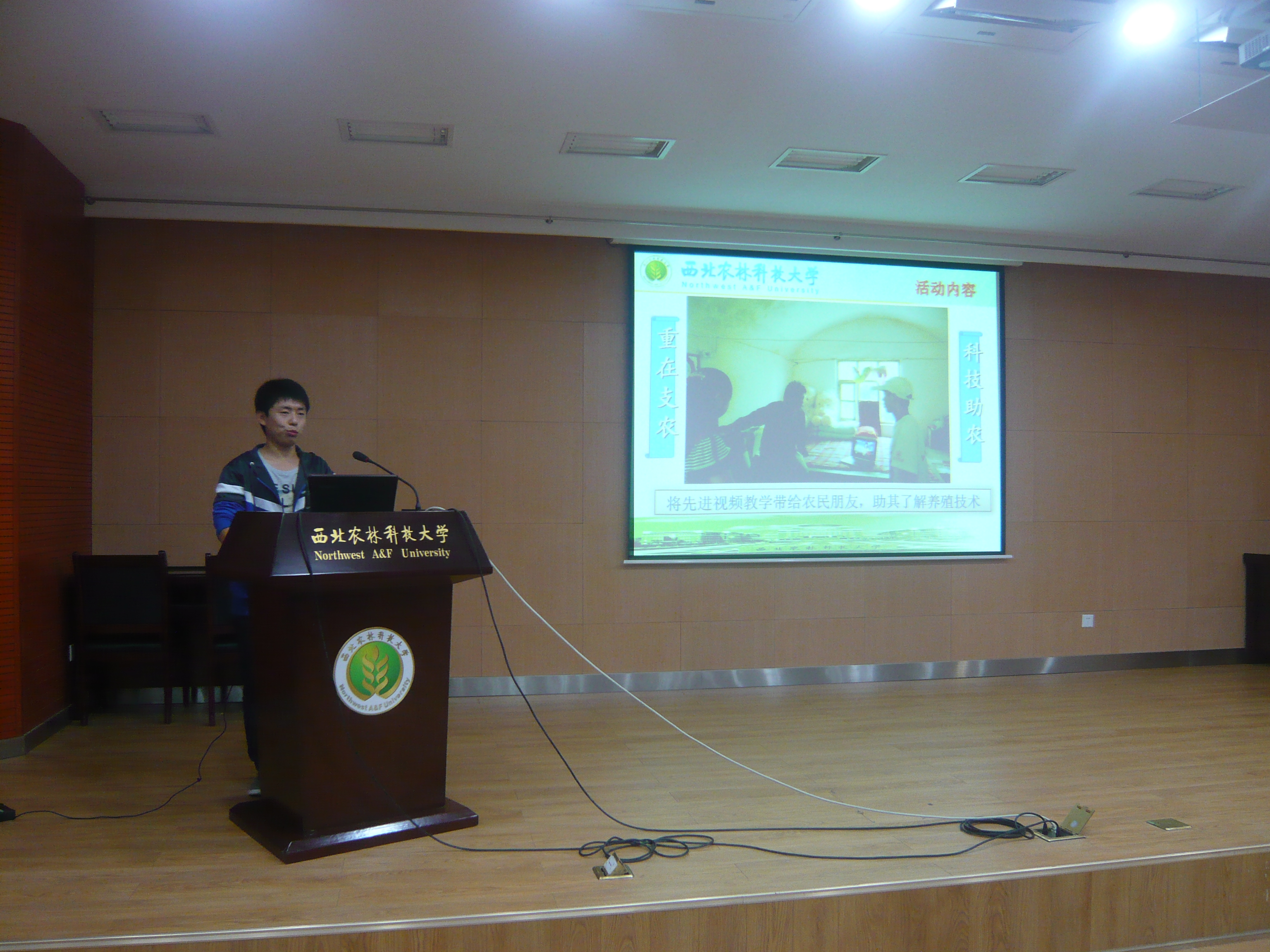 2012 WWF秦岭青年使者活动——“绿旋风”——摩天岭服务队。服务队一行七人假期深入秦岭“摩天岭”保护区,全面调查大鲵养殖问题。本次活动的队员代表曲正祥详细地介绍了WWF组织,以及在秦岭山区的实地考察、试验过程、为当地养殖户提供正确的大鲵病害分析与治疗办法,并将回到学校后的思考与总结与同学们分享。