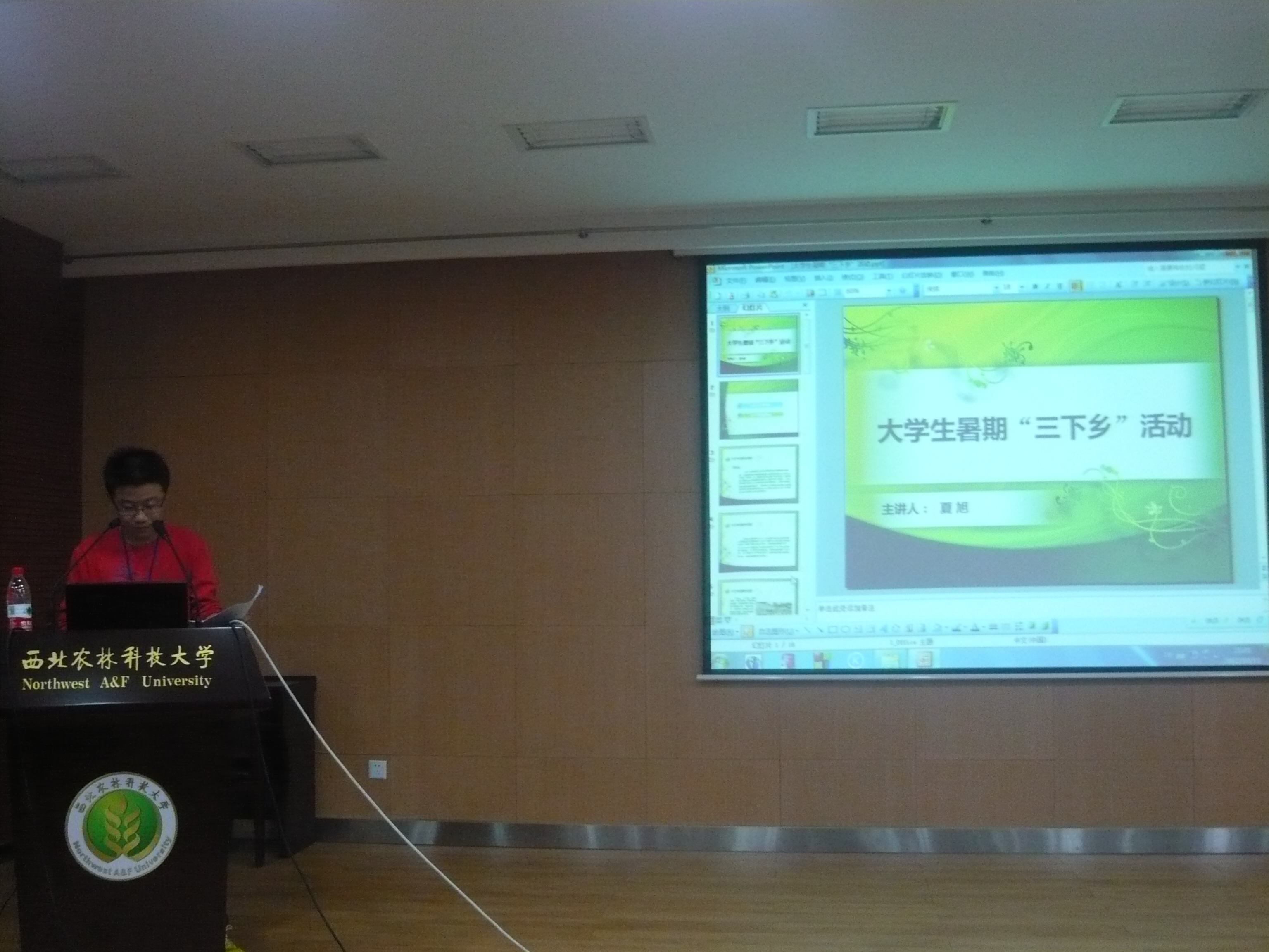 大会开始,首先由桂老师和倪老师先后向同学们介绍了bat365官网的几个特色社会实践活动,其中包括2012WWF秦岭青年使者活动、赴延安支农支教服务队、多媒体培训服务队、暑期“三下乡”活动、计算机义务服务队活动等,老师们在讲话中指出参与社会实践活动有助于开阔学生视野,提高学生综合能力,并鼓励在场2012级新生积极参加大学生社会实践活动与青年志愿者活动,在真正社会实践中收获知识,增长才干。