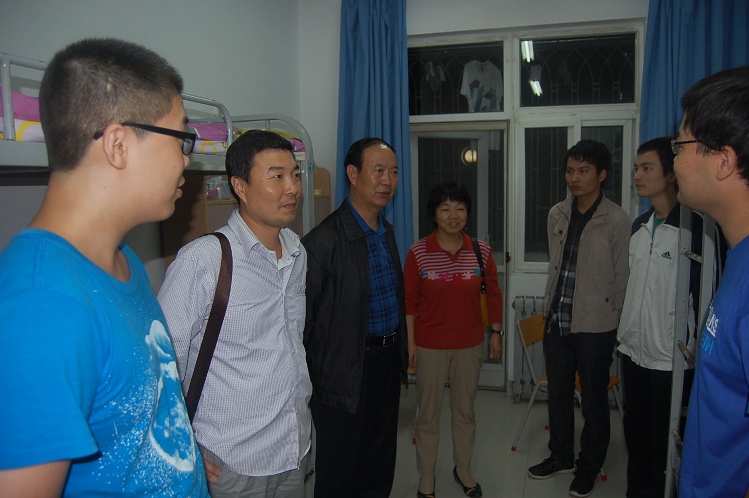 9月8日晚,信息学院党委书记樊世明、院长李书琴、党委副书记何卫军带领学院政工干部、新生班主任一行深入宿舍看望我院2012级新生,与他们亲切交谈,充分了解其进入大学的感受。