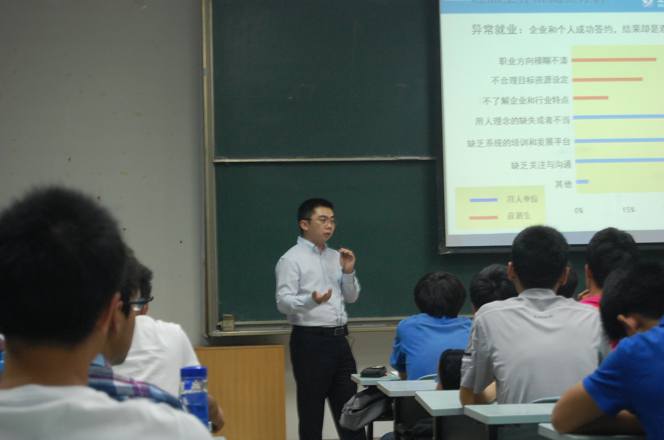 2012年5月15日20点,bat365中文官网网页版邀请四川华迪信息技术有限公司研发部主任王强主任和北京利达智通信息技术有限公司项目经理李海湜经理在M2教室举办了针对就业的讲座。