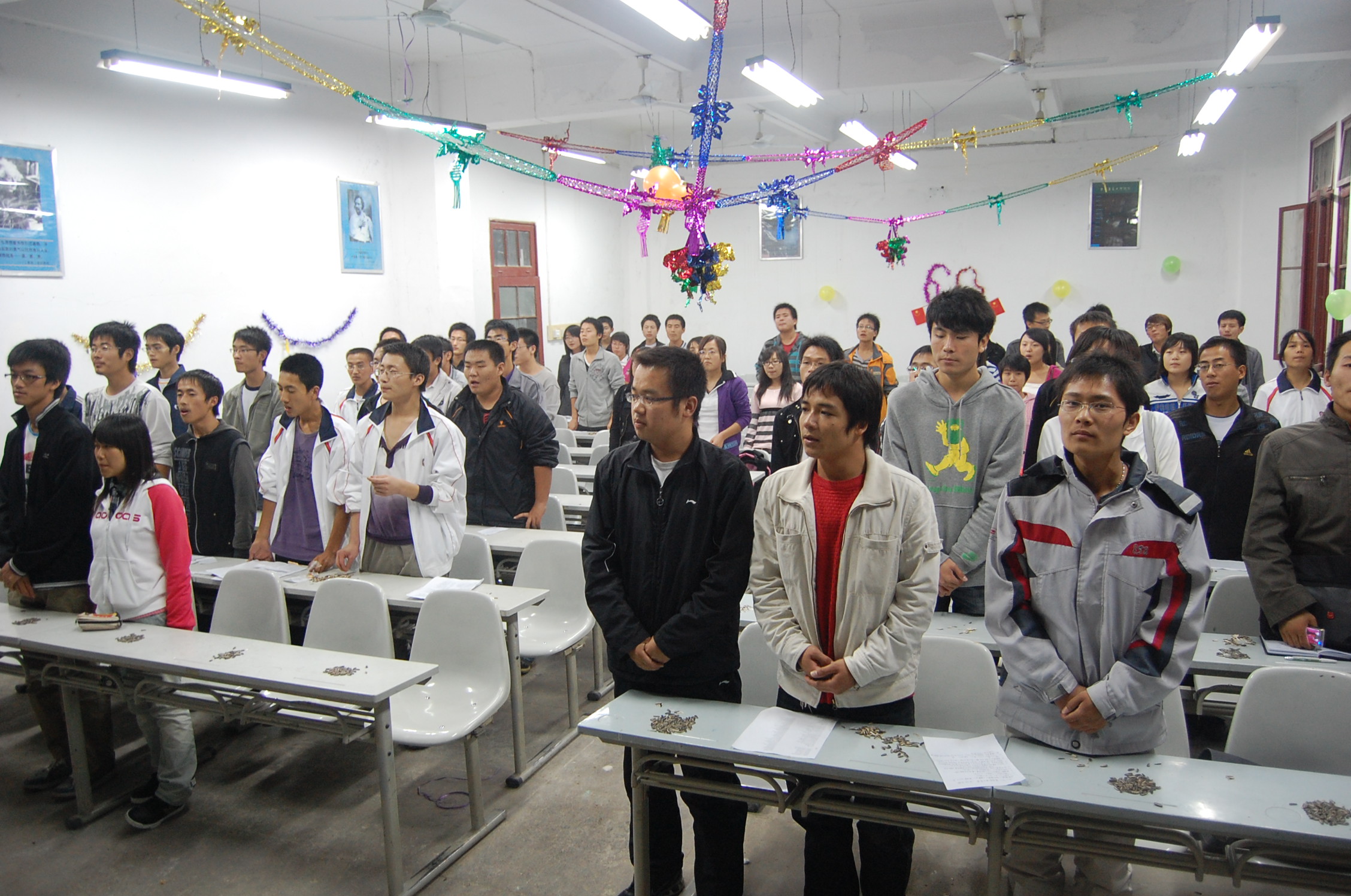 为了庆祝祖国六十华诞,增进同学友谊,10月8日晚信息学院软件工程专业和计算机科学与技术专业分别在N3309和N3206举办“爱国歌曲大家唱”团组织生活。信息学院团工委书记安中立老师和部分学生会干部参加了这次联谊晚会。