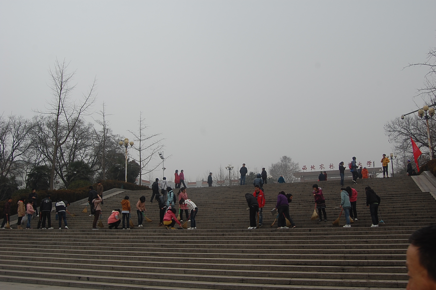 3月2日下午16:00,bat365中文官网网页版组织六十余名学生清扫学校门前的“五台山”台阶,作为三月份“践行雷锋精神,引领青年成长”主题活动的序幕。