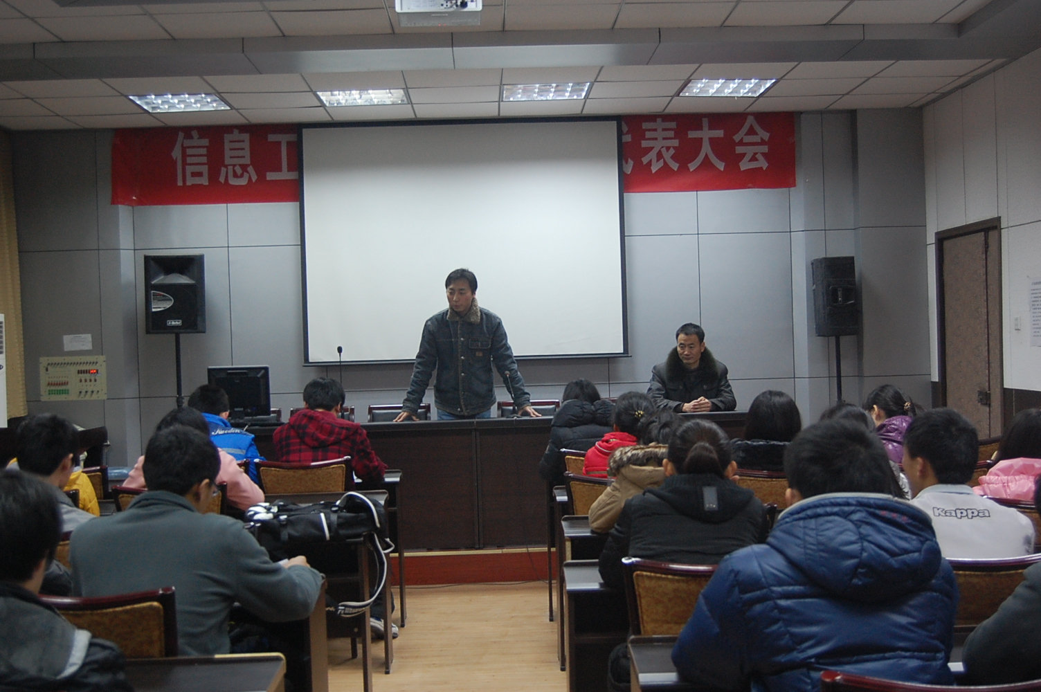 2012年2月29日19:30,bat365中文官网网页版在二楼会议室召开2012年校田径运动会训练动员会。院学工秘书王淑珍老师、体育辅导员杜养军老师、辅导员桂恺老师、院学生会体育部成员及全院四十余名运动员参加了会议。
