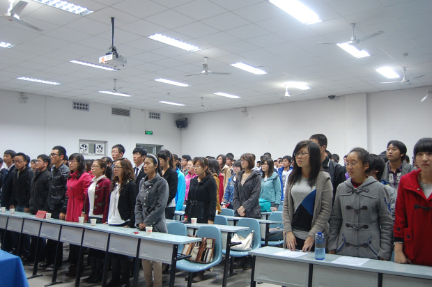 何卫军老师讲话结束后,谷申杰老师对典礼进行了总结,开课典礼取得圆满成功,并在大家的掌声中顺利落幕。何老师随后为所有团课学员讲授了主题为“学生干部工作方法”的首次团课,对于学生干部日后的工作提出了高屋建瓴、视野开阔、具有全局意识的指导,受训学员纷纷表示获益良多。相信将其作为日后的工作指南,一定能够取得事半功倍的效果。