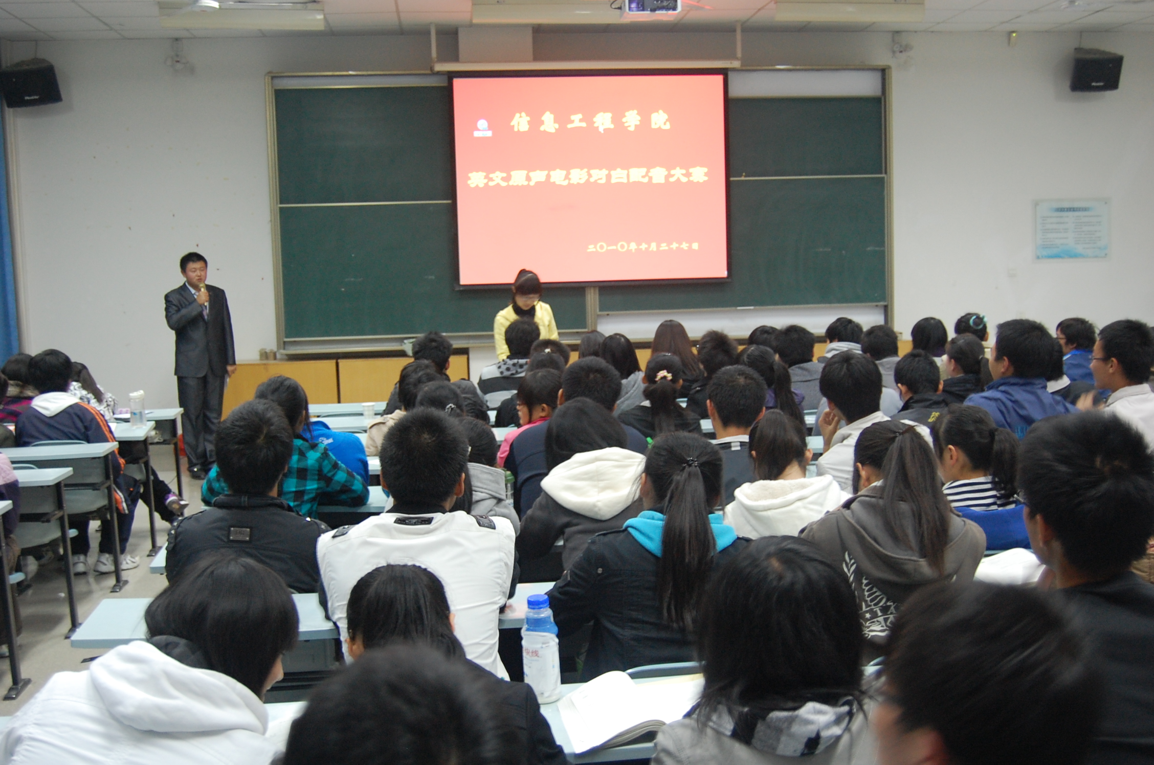 10月27日晚,bat365中文官网网页版在信工楼M2教室成功举办英文原声电影配音大赛。校学习部副部长张学治,外语系杨丹、王素素以及上届冠军琪非、辛彤学长等担任此次大赛的评委。