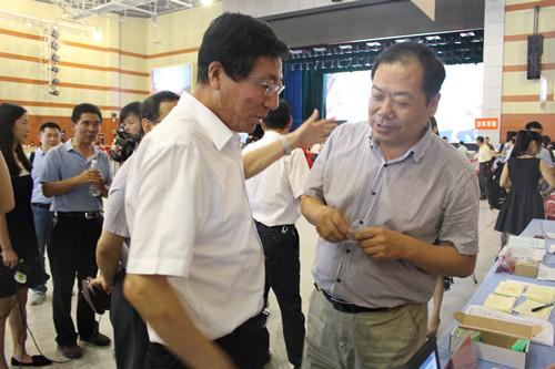 信息学院的工作台前,宋西德书记向校长展示了今年我院为新生服务的三大创意特色:一是学院微信公众号做足准备,为新生提供生活指南,咨询答疑等服务,让新生在入学前对学院就有了初步的了解,拉近了学生与学院之间的距离;二是学院细心制作了本本题为“携手培养 家长必读”的小册子,囊括了专业课程设置介绍,学生教育管理常见问题解析,以及获取学院服务的常用联系方式等综合信息,创建了家长和学院间沟通的桥梁,学院和家长的有效配合,也是学生成长成才路上强有力的后盾和支撑。三是由院长精心制作了四大专业课程设置知识需求和能力需求支撑图,将专业课程的知识和能力培养清晰地展现给新生及其家长,让他们充分了解大学即将学习的内容,立好目标,做好准备,同时也为他们大学四年的学习指明了方向。孙其信校长竖起大拇指,连连说“好”,对学院的用心服务、特色迎新表示了肯定。其后,宋书记又向校长传达了学院迎新的喜报:今年我院的第一专业志愿率已达到了90%以上,创下历史新高。来自五湖四海的莘莘学子愿以我院为家,四年立志成才争做信息领域的领先人物。孙校长频繁点头微笑,鼓励我院的管理与教育工作更上一层楼。