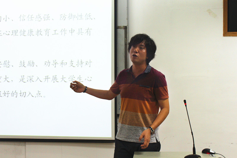 为配合校“5.25心理健康日”活动,有效开展院学生心理工作,提高班干部的专业素质、工作技巧和助人技能,我院于5月19日在院副201教室召开心理联络员培训会。此次培训会特别邀请校心理咨询中心窦龙老师担任主讲嘉宾,培训会由我院学工秘书王淑珍主持。