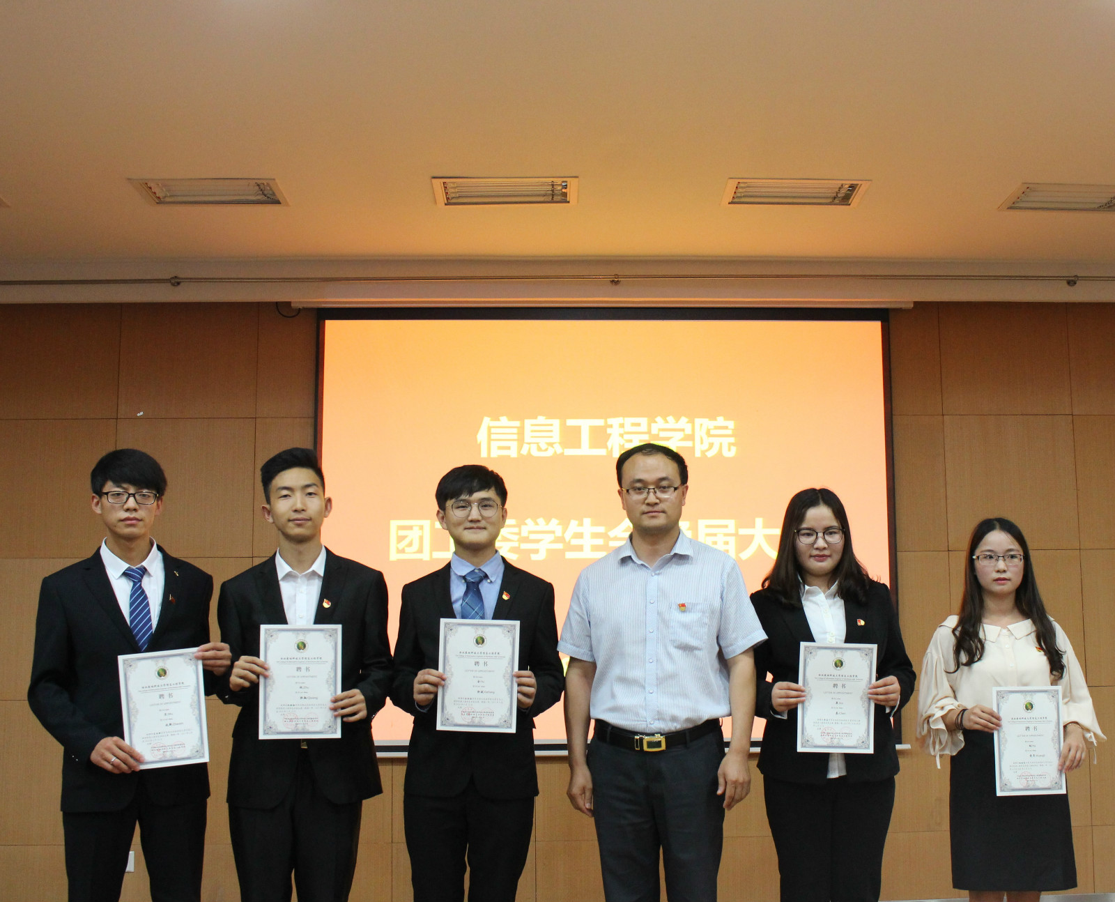 大会最后,翟立老师进行了发言。他表示,学生会是一个汇聚青春正能量的地方。学生会这一年,大家一起走过,一起成长,一起收获。他对上一届主席团成员表示感谢,以及对新一届主席团成员表现了极大的期望,他们是信息学院的新面貌,新作为,新成绩,新担当。同时告知他们要始终坚持“围绕学生,关照学生,服务学生”的理念。最后,翟立书记劝诫全体成员要严于律己,以更好的标尺衡量自己,不忘初心,求精求细求心,并感谢全体学生会成员这一年的辛勤付出。
