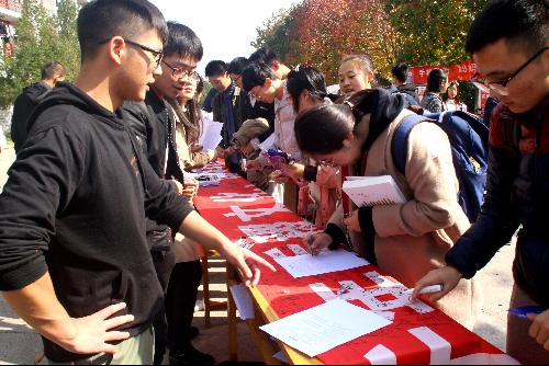 秋天是一个充满希望与丰收的季节,杨凌也迎来了一年一度的农高会。2017年11月2号中午,bat365中文官网网页版、生命学院、创新学院和理学院四院实践部联合举办的农高会宣传活动在西雕处举办。